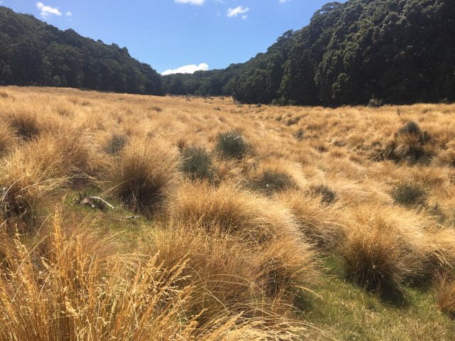 Was relatively hard going today with head height tussock and swamp conditions that would catch me off guard. I’d be walking along and then suddenly find myself in thigh deep mud holes. The terrain alternated between this and steep ridges and beech forest gullies.