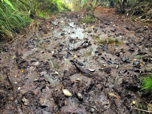 The highest point of today’s trail was Richards Knob. From here it was mostly down hill (still in mud) to exit the trail onto grazed farm land along Poads Road.